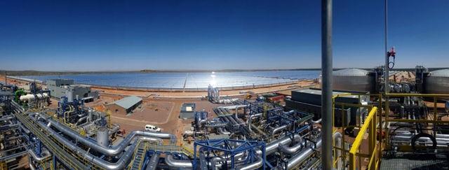 La nueva planta termosolar de Bokpoort se encuentra ya en operación y tiene una potencia de 55 MW brutos. Utiliza tecnologíade colectores cilindroparabólicos SENERtrough©, con un sistema de dos tanques de 18 metros de altura y 36/40 metros de diámetro para el almacenamiento de energía (TES – Thermal Energy Storage) mediante sales fundidas, de 1.300 Mwht, que proporcionan 9,3 horas de funcionamiento. El campo solar de la instalación está integrado por 180 lazos, y su producción anual será de más de 230 GWh netos. La ubicación de la central, en las inmediaciones del desierto del Kalahari, aprovecha las magníficas condiciones solares y ambientales de tan remoto emplazamiento.